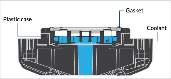 Make sure that there is no gap between the cooling plate and the plastic case.