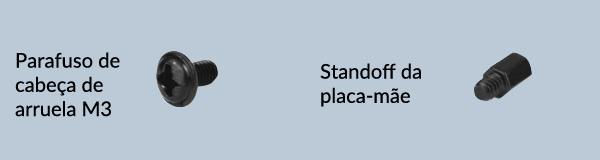 Use parafusos M3 com arruela para instalar placas-mãe ATX. O número de parafusos necessários pode variar dependendo do modelo da placa-mãe.