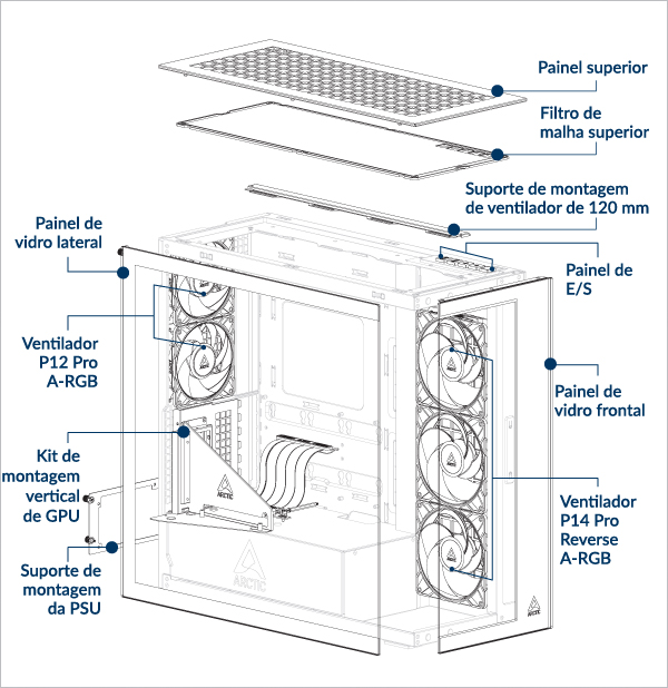 Se você estiver usando o cooler Liquid Freezer III Pro AIO com montagem vertical para GPU, então: