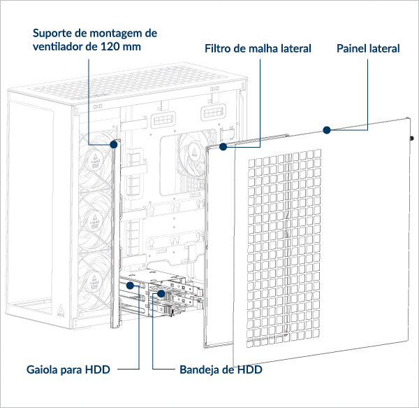 Suporta 2 ventoinhas de 120 mm na parte traseiraar