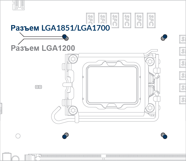 * Для материнских плат с 2 наборами монтажных отверстий, как показано на рисунке выше, установите кулер на внешние отверстия.