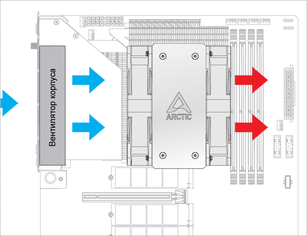 Вентиляторы можно вращать для облегчения прокладки кабелей