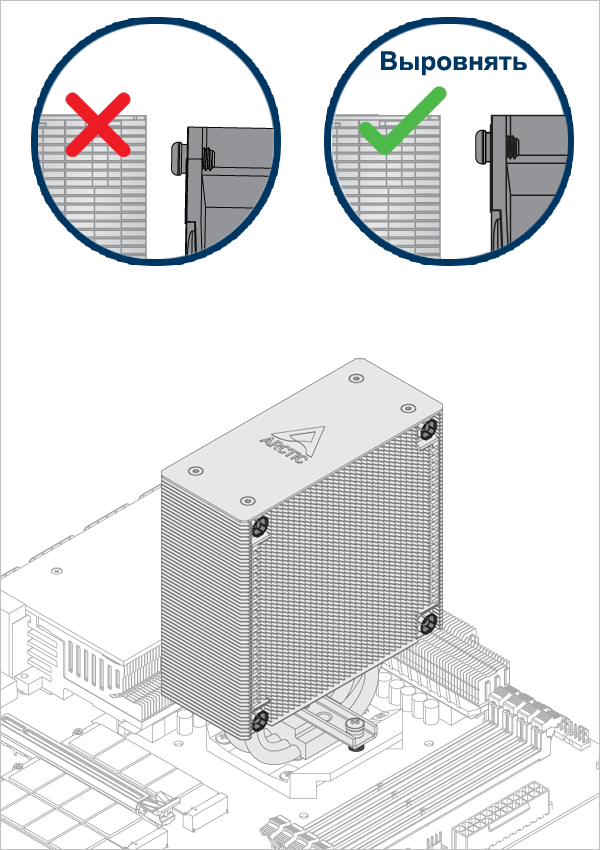 Ослабьте все 4 винта на 2 оборота, а затем равномерно затяните их крест-накрест, чтобы не повредить процессор.