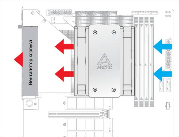 Вентиляторы можно вращать для облегчения прокладки кабелей