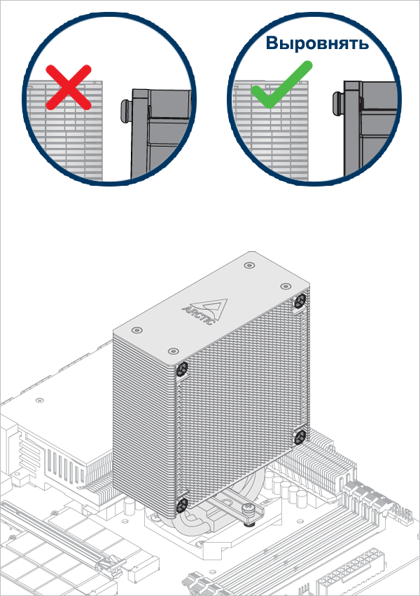 Ослабьте все 4 винта на 2 оборота, а затем равномерно затяните их крест-накрест, чтобы не повредить процессор.