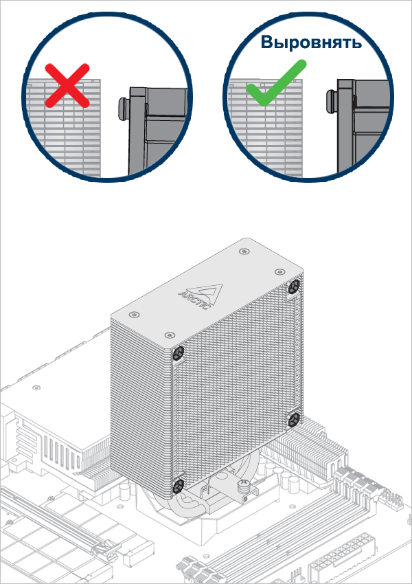 Ослабьте все 4 винта на 2 оборота, а затем равномерно затяните их крест-накрест, чтобы не повредить процессор.