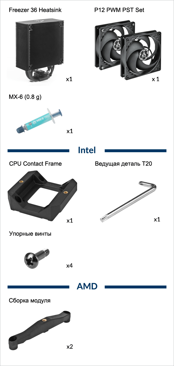Винты, открученные при снятии крепления AMD, теперь нужны для установки модулей.