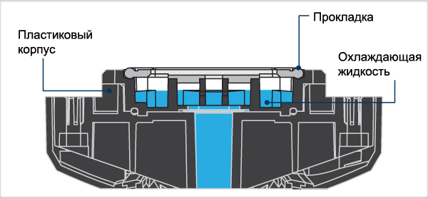 Убедитесь, что между охлаждающей пластиной и пластиковым корпусом нет зазора.