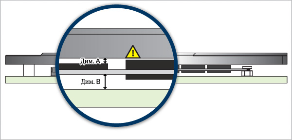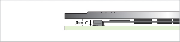 Dim. B – зазор между нижней частью печатной платы и основаниемe