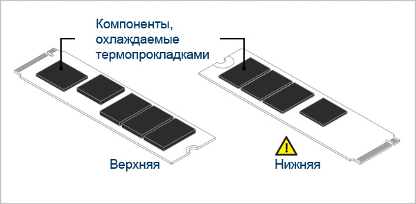 Вы можете обнаружить, что толщина микросхем не одинакова. Например, высота контроллера (серого чипа) меньше, чем чипов памяти (черных чипов). Если вы используете только один кусок тонкой термопрокладки для всего M.2, вы, возможно, не сможете охладить контроллер или более тонкие чипы.