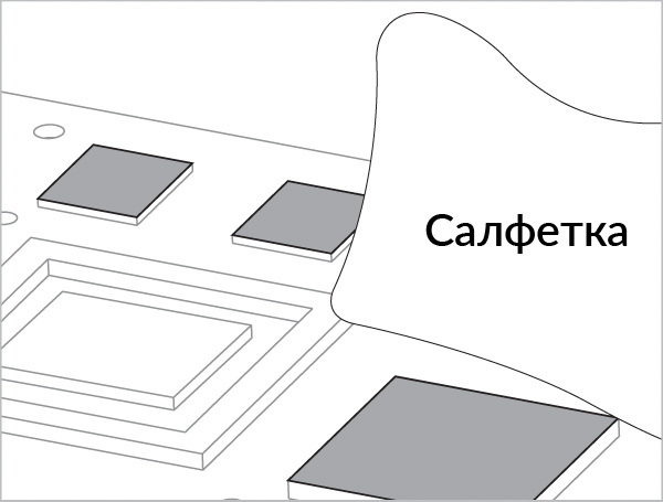 Для радиаторов чипсетов вырежьте прокладку того же размера, что и чип, и замените термопрокладку между ними.