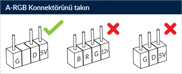 Anakart üzerindeki 3 Pinli A-RGB konektörüne bağlayın.