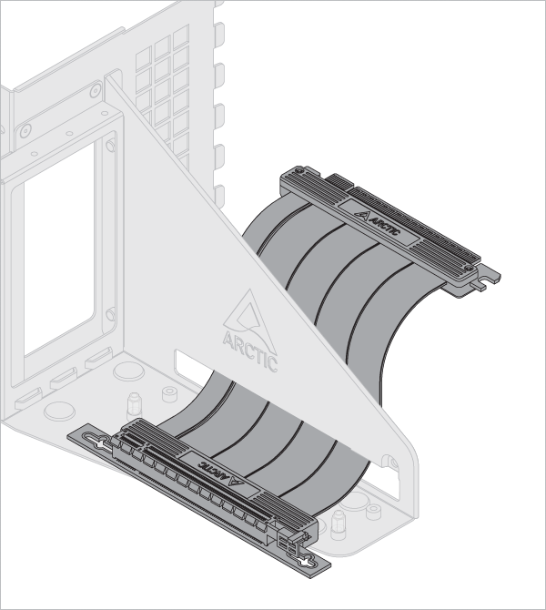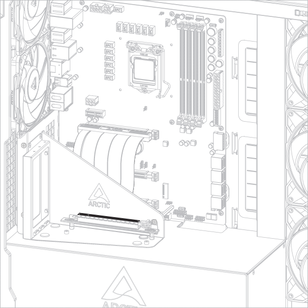Some graphics cards are equipped with an oversized cooler that exceeds greatly the dimensions defined by the PCIe specification. When such card is assembled in the vertical mount bracket, it will come into the CPU cooler area and in some cases may present mechanical interferences.When faced with such interferences, adjusting the position of the riser cable to free up more space for CPU cooler.