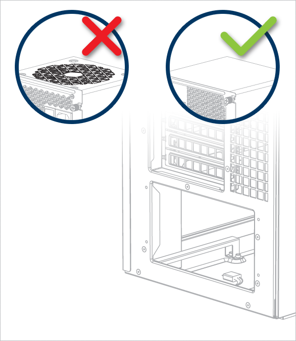 Important! Install the PSU with the fan facing downward.