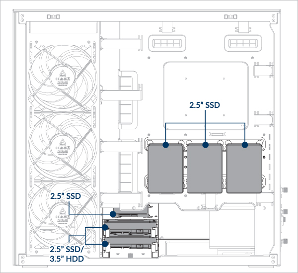 Removing the HDD cage will free up additional space for the power supply unit (PSU) or cable management (optional).