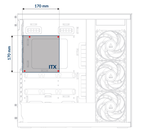 K instalaci základní desky Mini-ITX potřebujete čtyři šrouby M3 s podložkou.