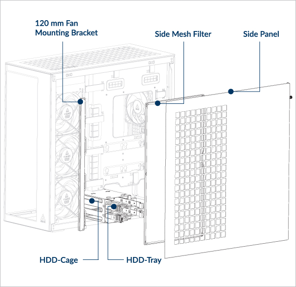 Removing the HDD cage will free up additional space for the power supply unit (PSU) or cable management (optional).